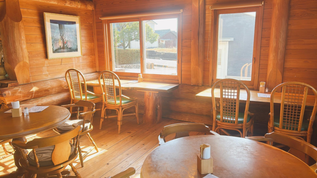 いなべインターのそばに建つ、ログハウス風の喫茶店です。