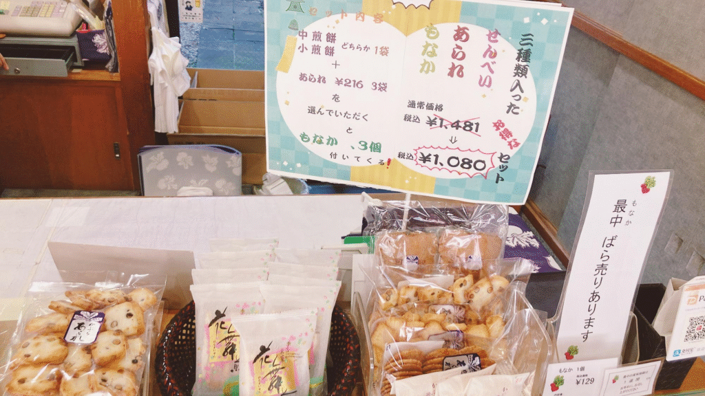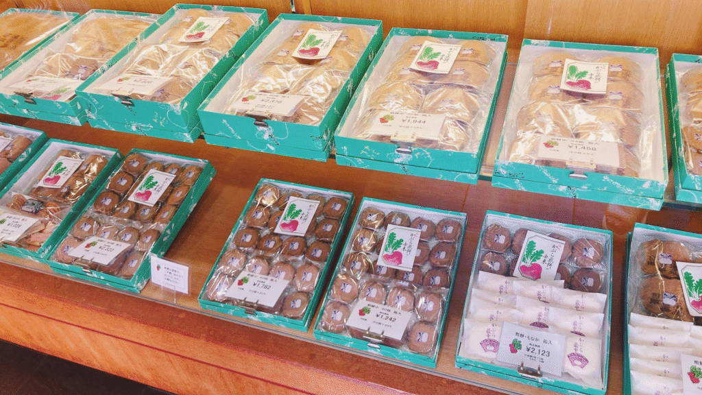 かぶら煎餅以外にも、かぶら最中やかぶらあられの販売もあり、甘い系もしょっぱい系も網羅しています。