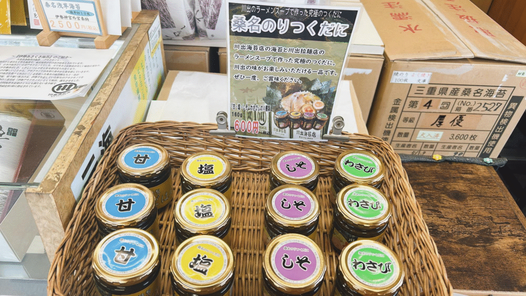 桑名産の本格的な海苔はもちろん、ラーメン店とコラボしたおもしろい商品も取り扱うお店なので、ぜひ覗いてみてくださいね。