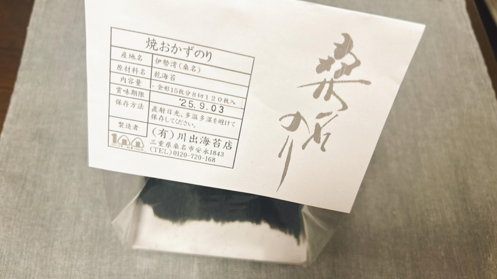 桑名産の海苔を使用しており、パリッとした食感と海苔ならではの風味の良さが特徴です。