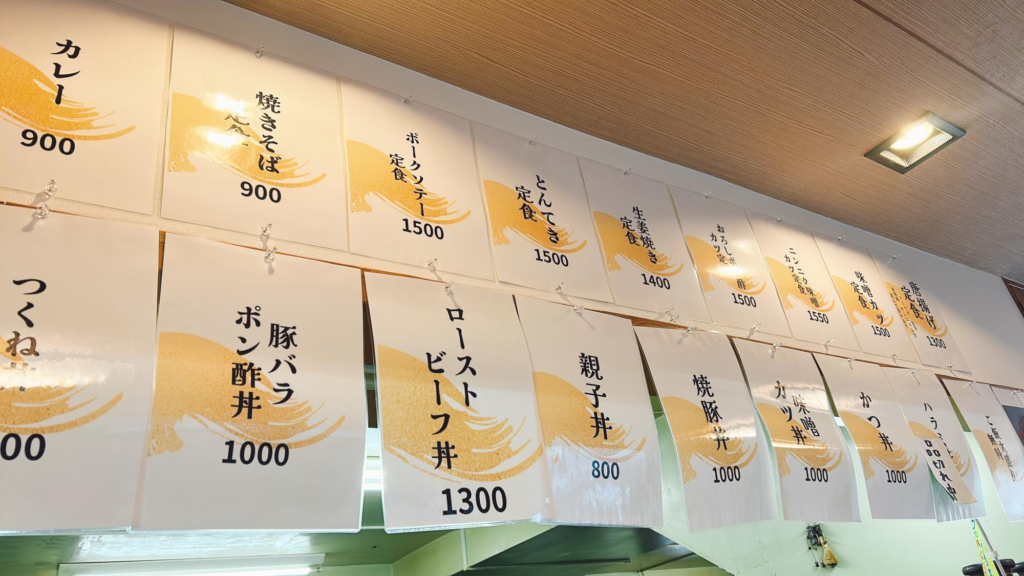 とんてき、しょうが焼き、カツ丼など肉系のメニューが豊富に揃っています。