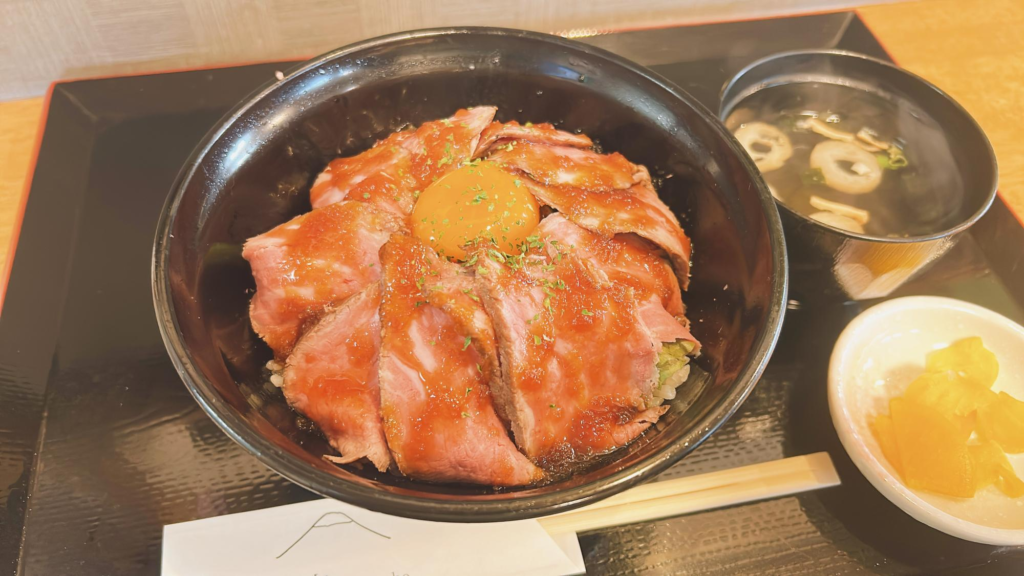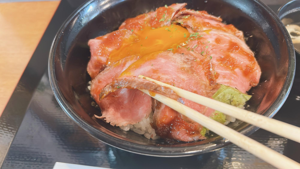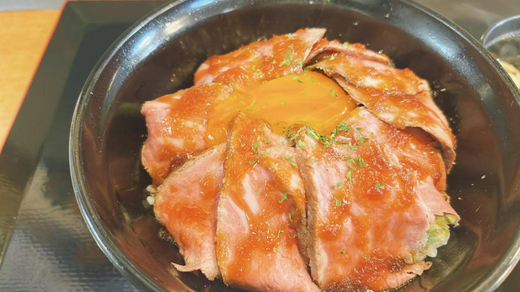 数あるメニューの中でも、多くのお客さんがオーダーしていたのがローストビーフ丼です。