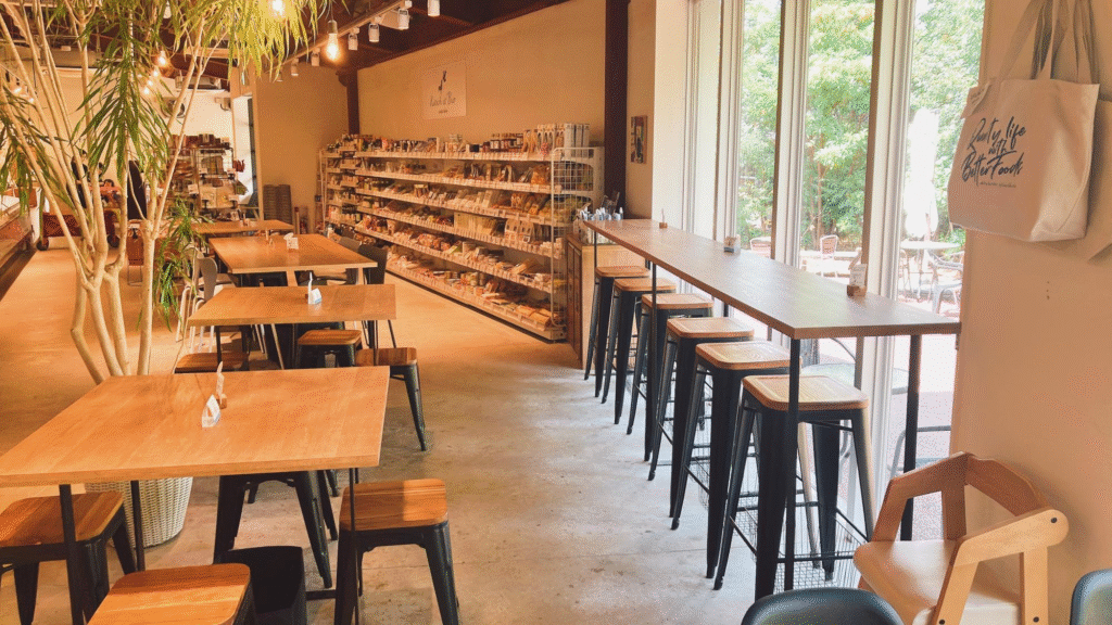 緑豊かな散歩道に沿って立つオシャレなお店で、用事がなくても入りたくなる魅力があります。