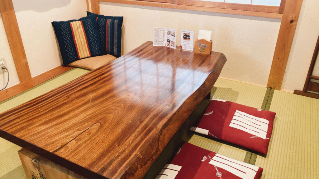 店内には小上がりになった座敷とカウンター、テーブル席があって落ち着いた空間となっています。