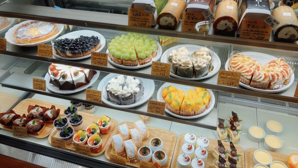店内に入ってまず目に飛び込んでくるのは、色とりどりのケーキが並んだショーケースです。
