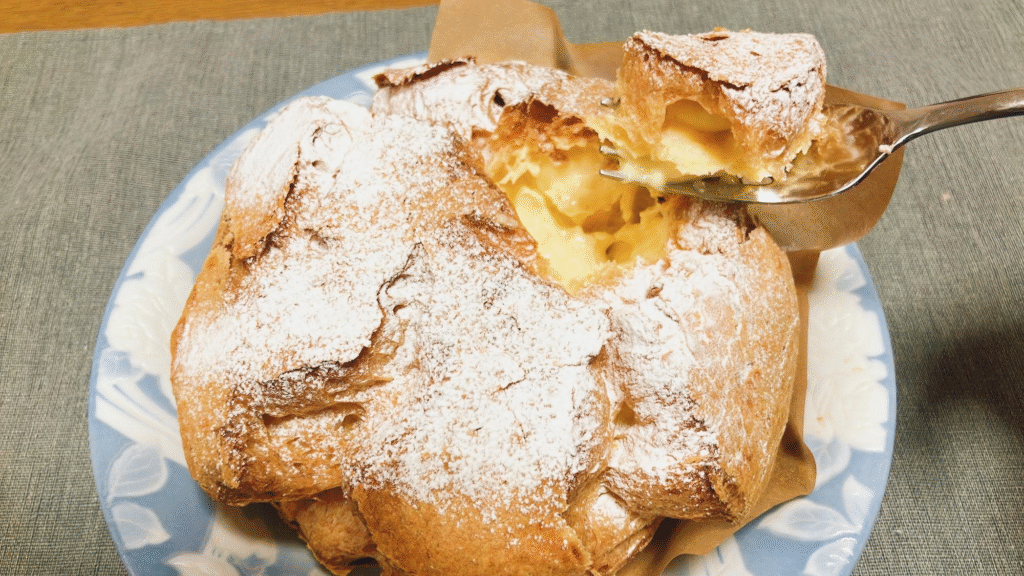 シュー生地をパイ生地で包んで丁寧に焼き上げた一品で、オーダーを受けてからクリームを詰めています。