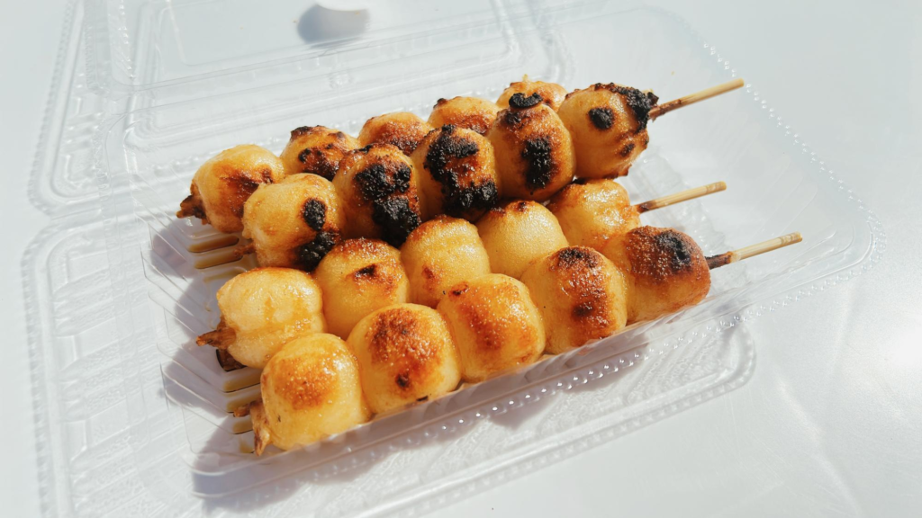 オーダーを受けてから焼いてもらうため数分時間がかかりますが、焼きたての香ばしいお団子が食べられますよ。