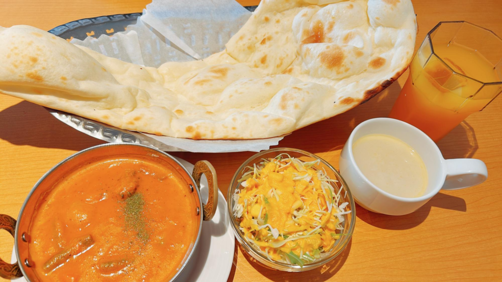 サラダ、ナン、ドリンクバー付のカレーが890円から手ごろに食べられます。