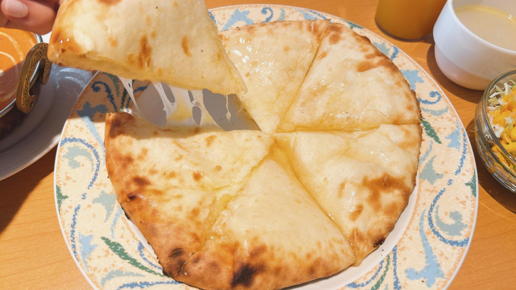 ハニーチーズナンは表面にはちみつがたっぷり、中からはチーズがとろ~り!