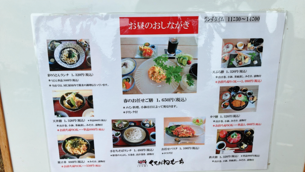 季節のお任せ御膳を中心に、蕎麦、うどん、天ぷらなど和食のメニューが多いです。