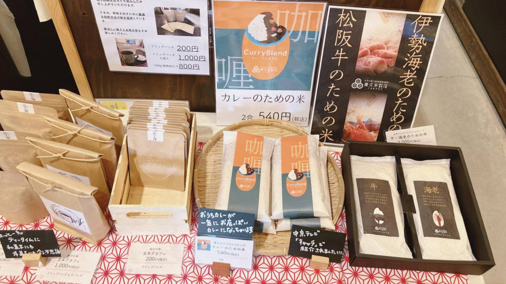 店内にはカレーのためのお米や、伊勢海老・松阪牛のためのお米など他では見かけることのないお米の販売もあって見ているだけでも楽しいです。
