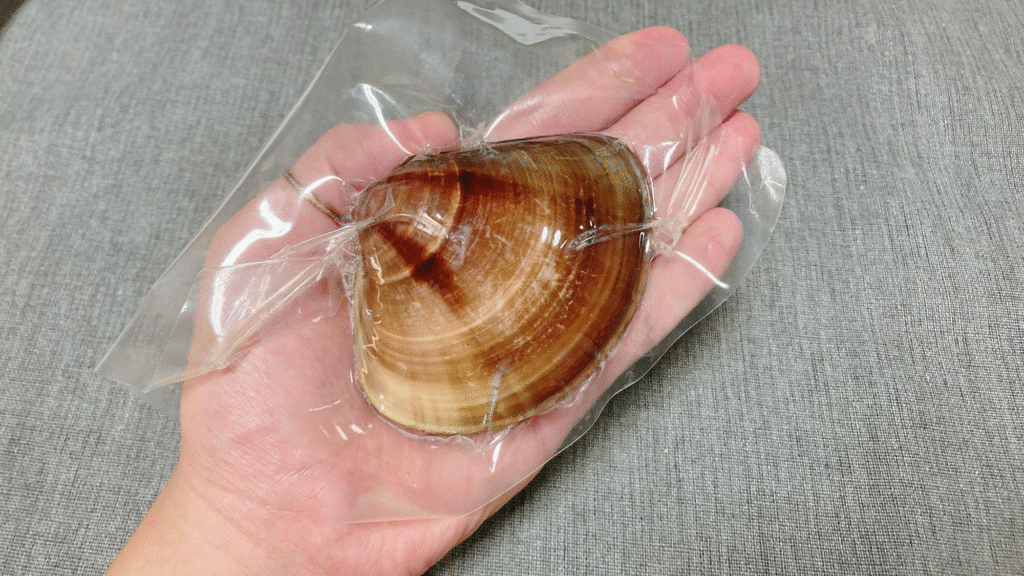 普通サイズのハマグリが入ったお値打ち価格の商品もあるのですが、せっかくなので10年ものの大きなハマグリ入りのものを購入してみました。
