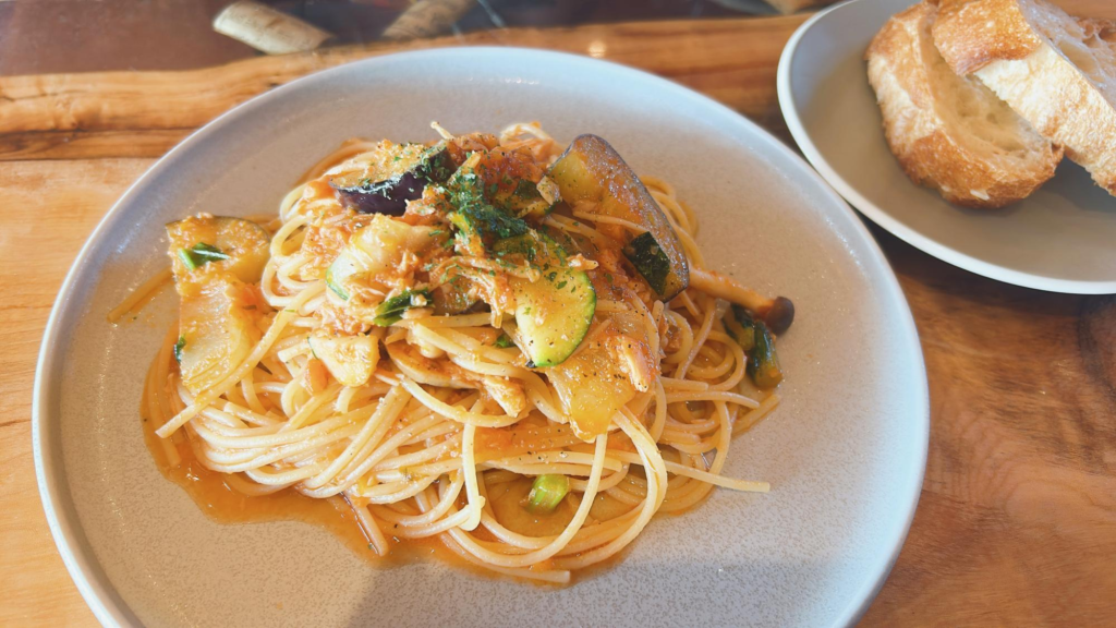 野菜たっぷりパスタです。