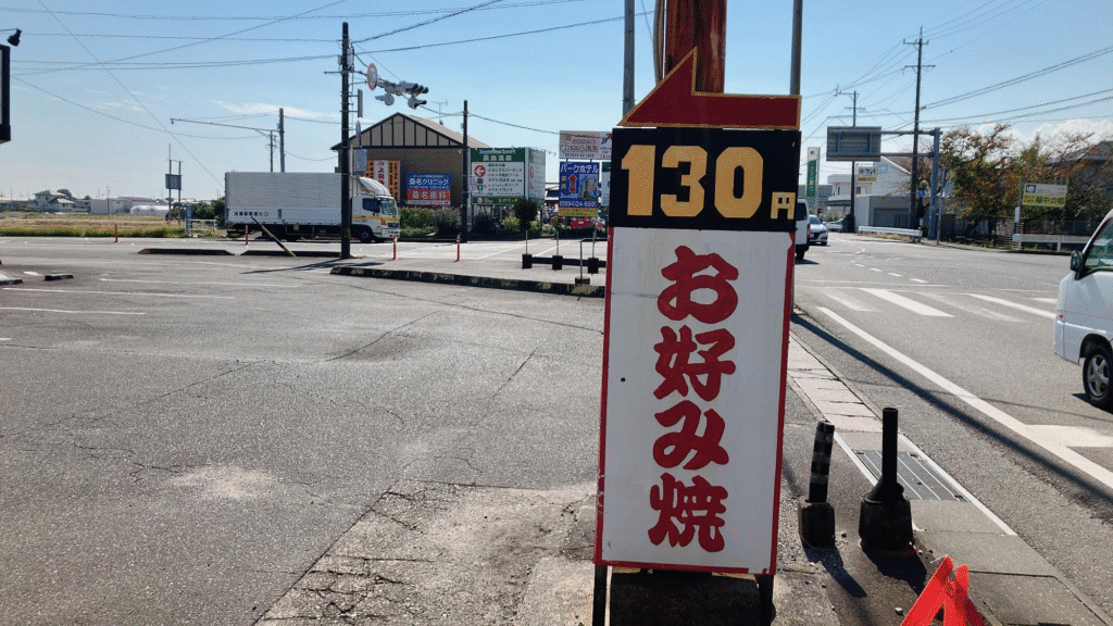 長島の一号線沿いに建つ『お好み焼130円』の看板を見たことがありますか?