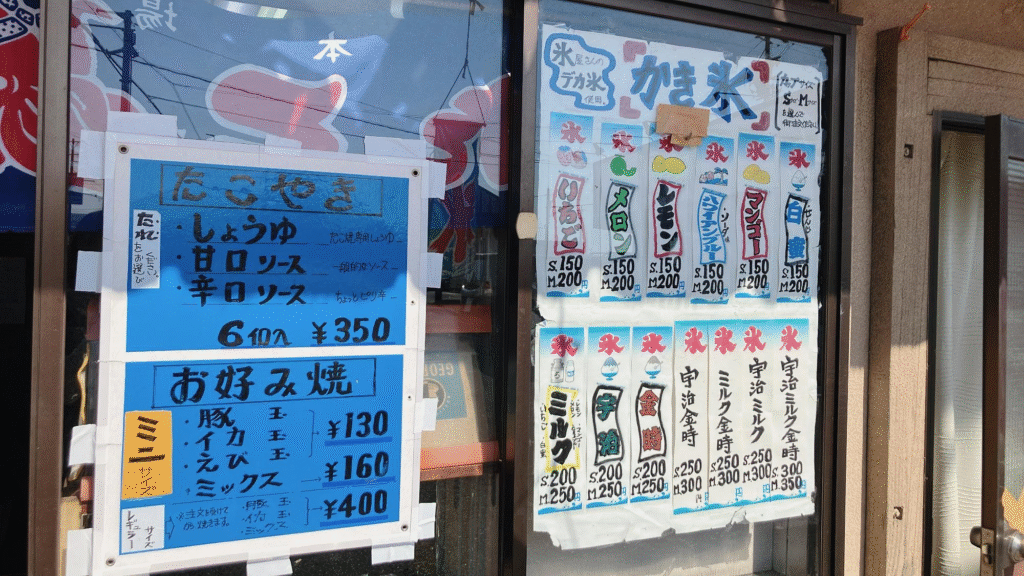 最近は涼しくなってきたので需要が減っていそうですが、かき氷もSサイズ150円~とリーズナブルです。