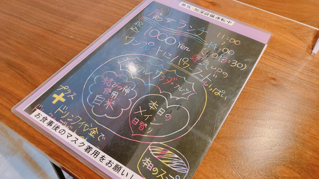 一号線から少し入ったところにあるカフェで、開運ごはんが食べられるほか占いもやっているお店です。
