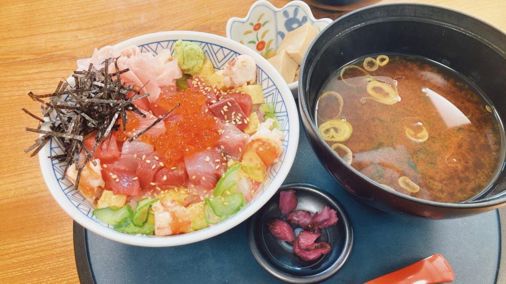 たっぷりの海鮮やいくらがのっており、かきこむように食べたくなる一品!