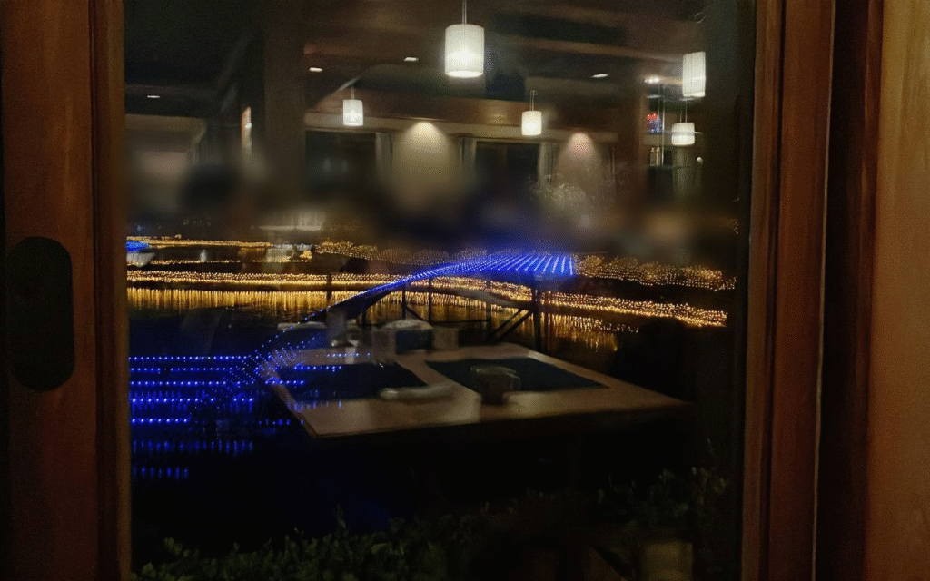 大きな窓から外を見ると、イルミネーションが広がりとてもロマンチックですね。