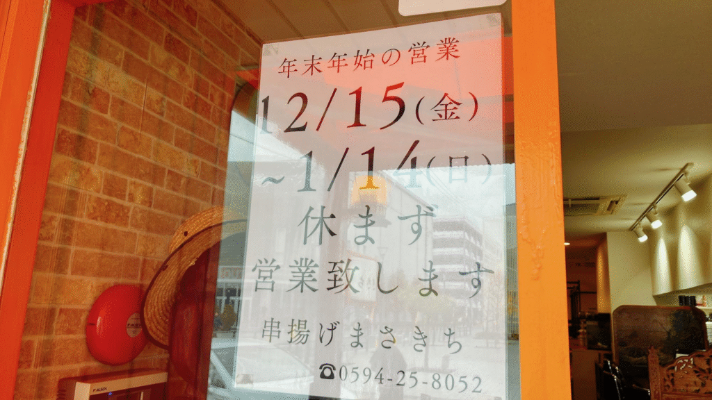 普段は金土日祝のみ営業していますが、12月15日~1月14日は平日も休まず営業しており、お正月でもメニューは変わらないそうです。
