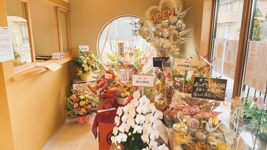 オープン初日にはたくさんの花輪が並び、行列ができる盛況ぶりでした。