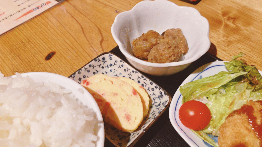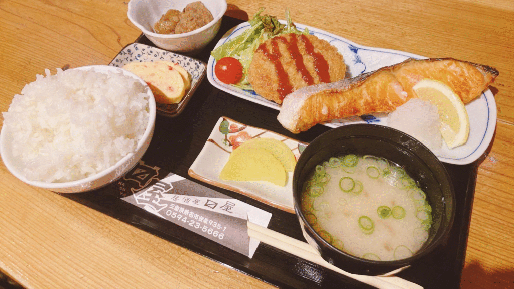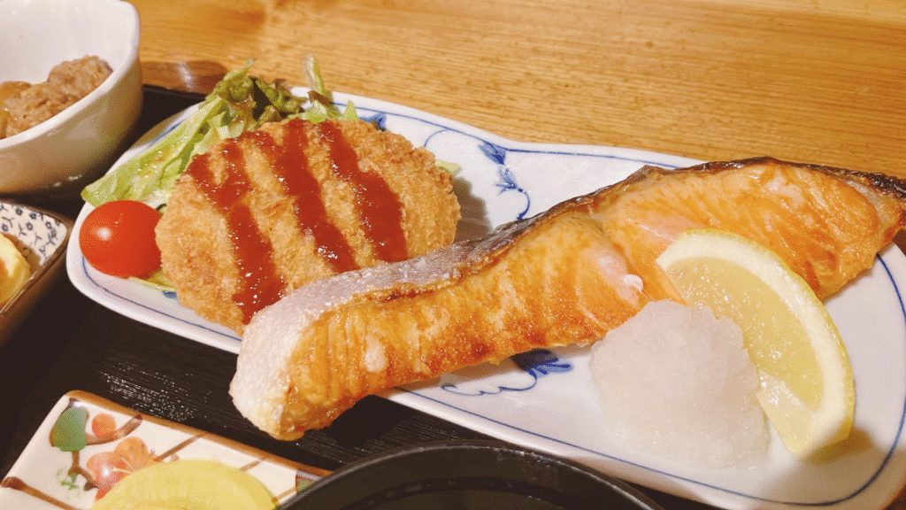 焼き魚だけでなく揚げたてのコロッケまでついていてお得感があります。