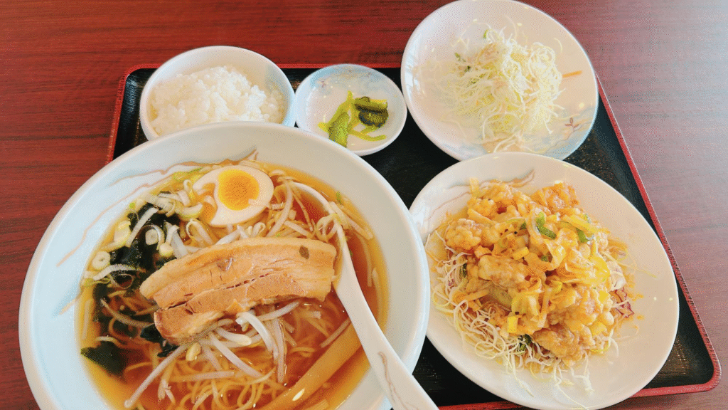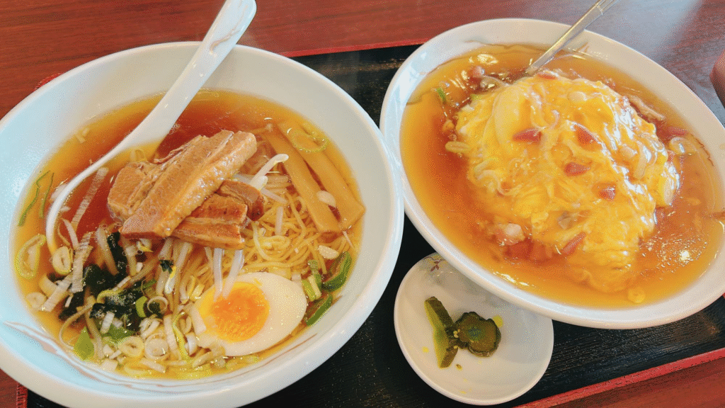 醤油ラーメンと天津飯のセット(ランチ800円)です。