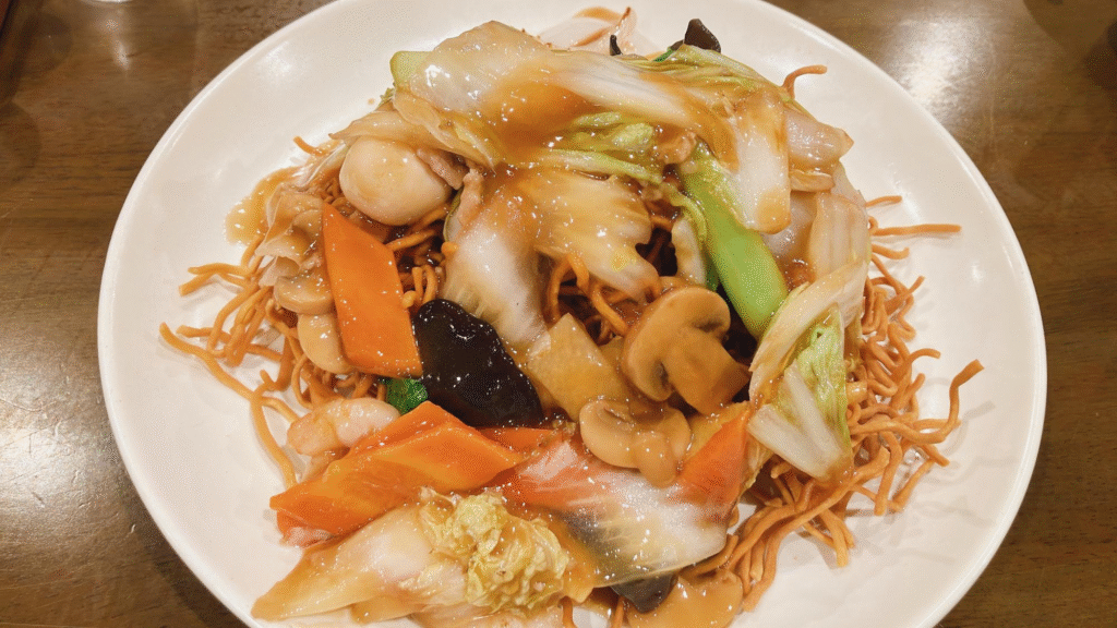 パリパリの麺に具材たっぷりの餡がうれしいです。