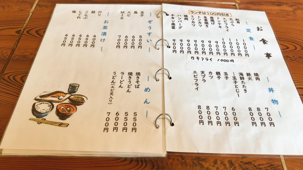 定食900円は安いと思いますが、よく見るとランチはさらに100円引きでびっくり!