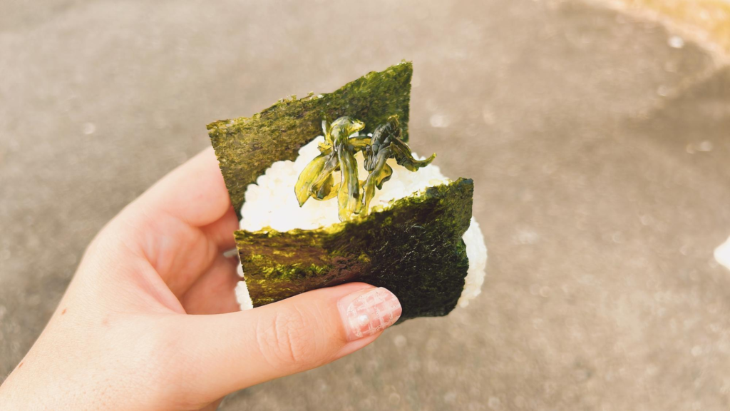 こちらはシソの実とワカメの佃煮のおにぎりです。
