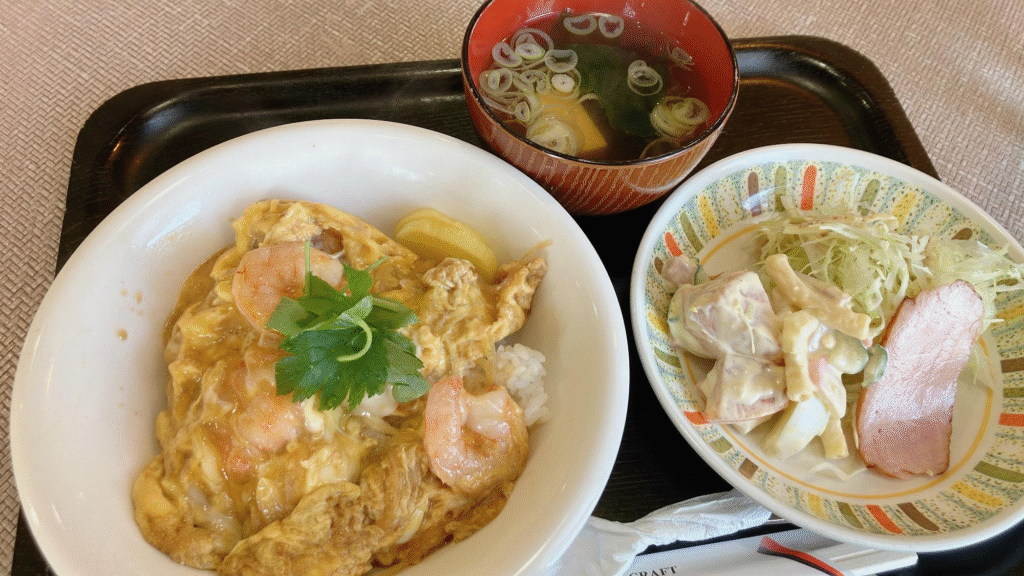 私が訪れた日のメニューはエビ玉子丼でしたよ。