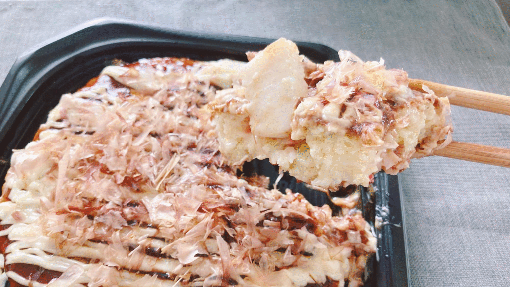 生地にチーズがたっぷりと使われていて、出汁の効いた生地がとてもおいしいです。