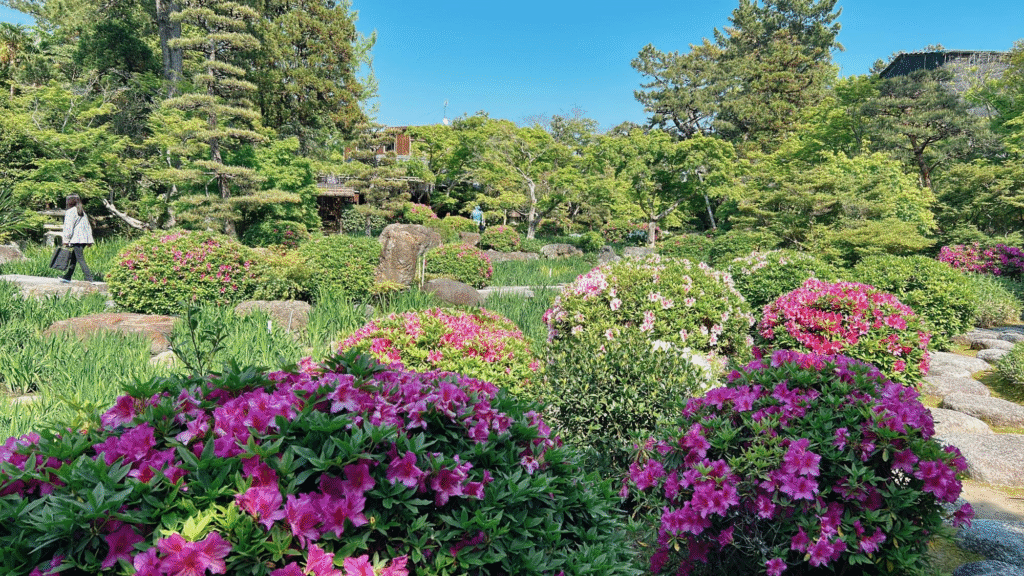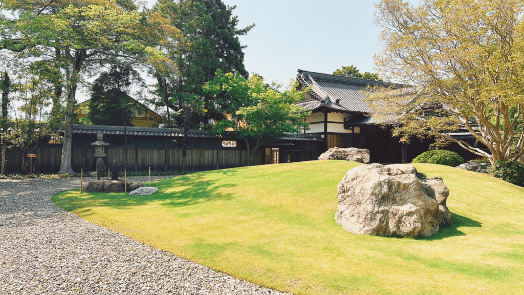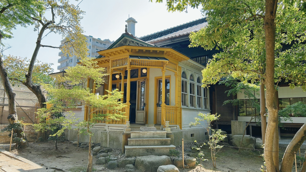 庭園は1686年に豪商山田彦左衛門が整備したものが礎となっており、多くの建物は1900年前後に建てられたものです。