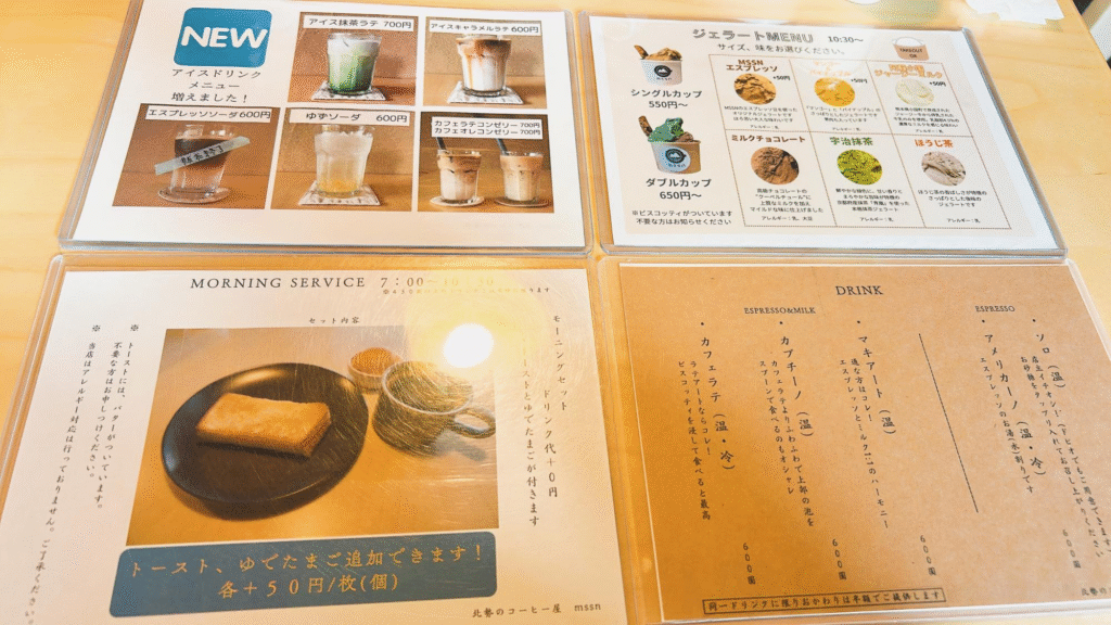 朝はモーニングを行っているほか、エスプレッソやカフェラテなどこだわりのドリンクメニュー、ジェラートや焼菓子も揃っていましたよ。