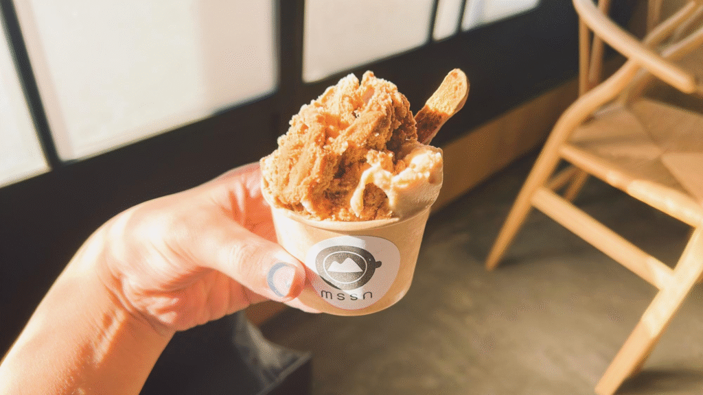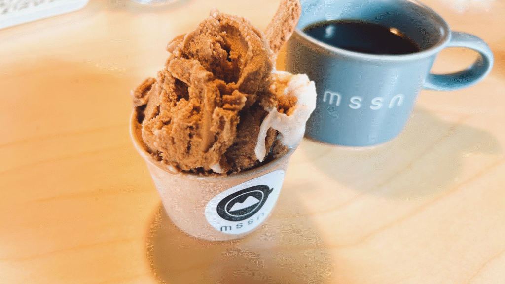 エスプレッソのジェラートはMSSNのエスプレッソ豆で作ったオリジナルで、想像以上にコーヒーの香りが活かされていてほろ苦さがとてもおいしかったです。