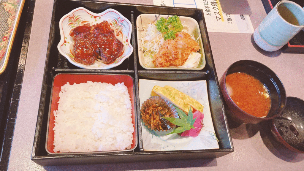 海老かつ定食が一番人気がありそうですが、むさし弁当にも海老かつが入っていて、いろいろなものを食べたい方にはこちらがおすすめです。