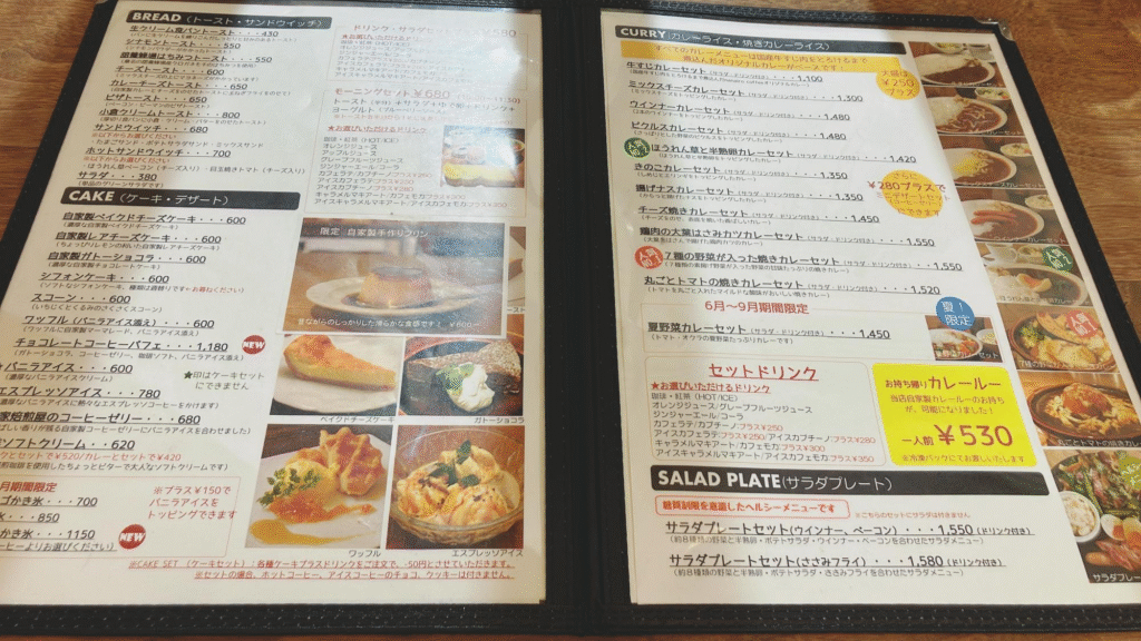 以前訪れた際にカレーをいただきましたが、国産牛すじ肉をトロトロになるまで煮込んだオリジナルカレーは程よい辛さとスパイスの香りがよくとてもおいしかったです。