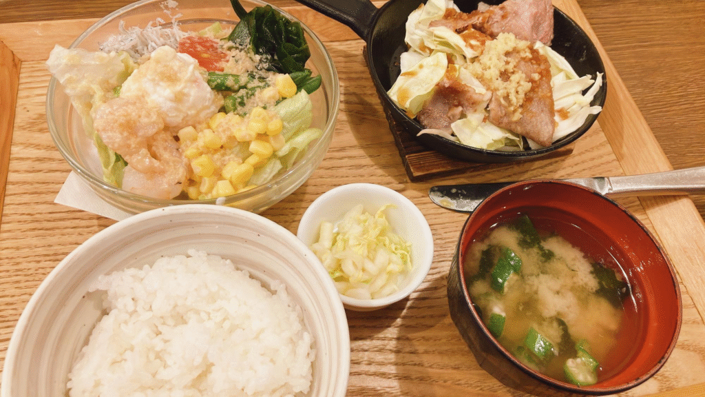 この日はあっさり系の気分だったので、ショウガ焼きとサラダをオーダーしてみました。