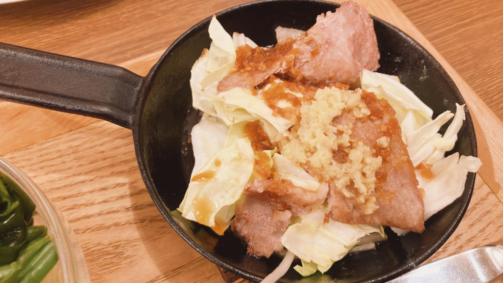 鉄板にのっているので最後までアツアツで食べられるのもうれしいですね。