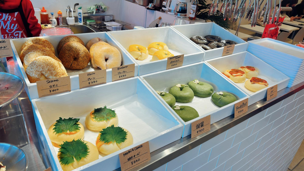 私はプレオープンの日に訪れたのですが、10種類以上のベーグルが並んでいました。