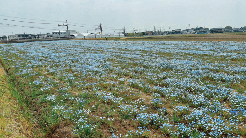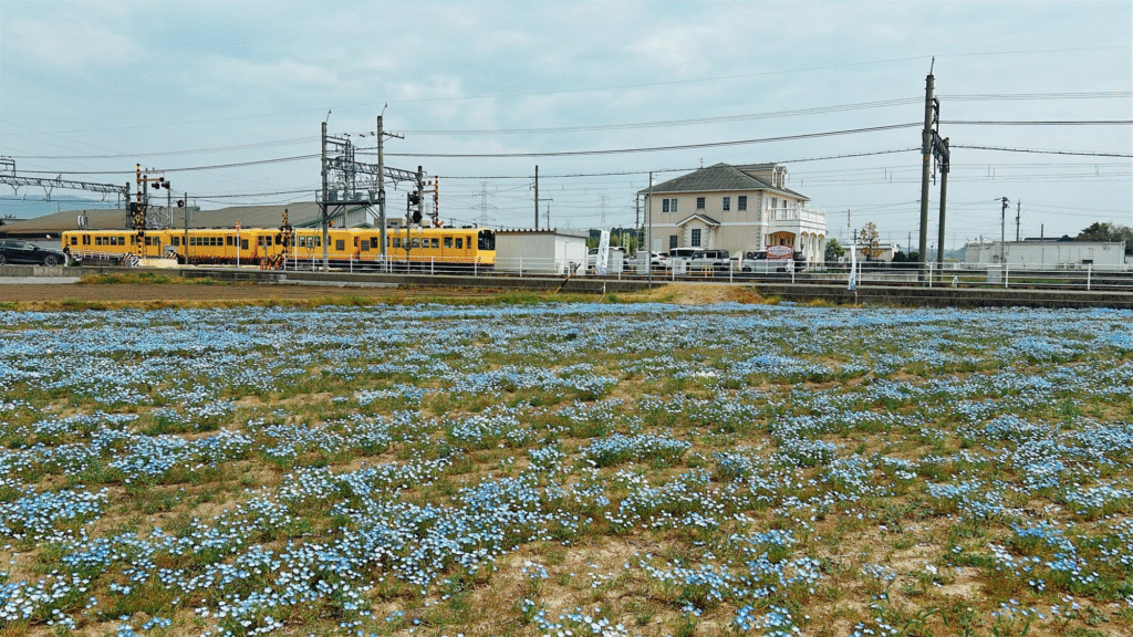大泉駅のすぐそばなので、今の時期はネモフィラと電車のコラボ写真を撮影することもできますよ。