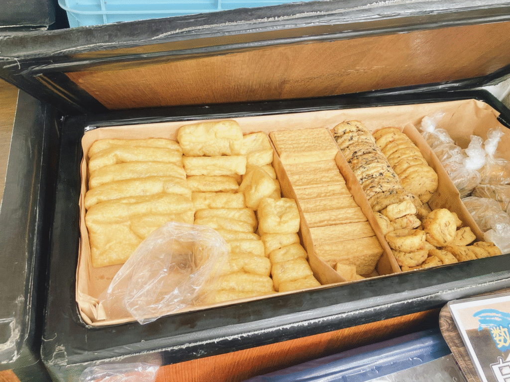 車の中には木綿・絹豆富をはじめとし、厚揚げや油揚げなどがいっぱい!