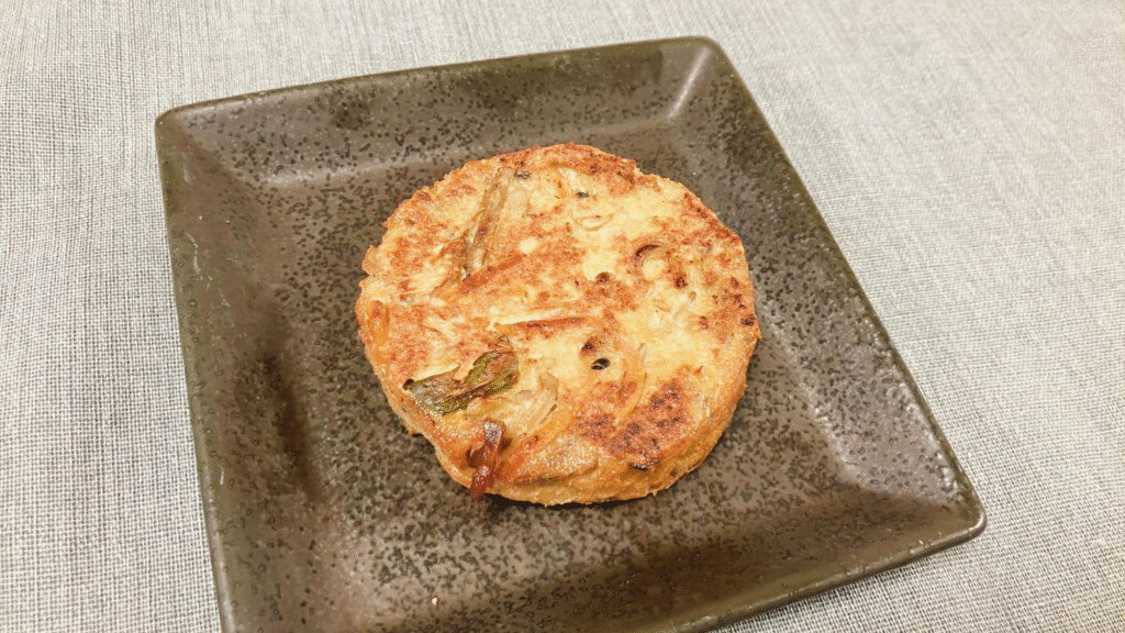 キンピラ入りのひりょうず(がんもどき)は軽く焼くだけでゴボウと豆富の風味がよく、おかずにもおつまみにもなるおいしさでした。