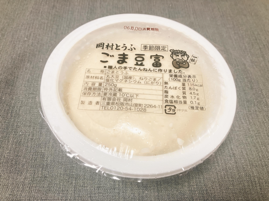 しょうゆや、ワサビ醤油をかけて食べるのがおすすめだそうで、ほんのり感じるごまの風味とまったりとした豆富のおいしさに驚きました。
