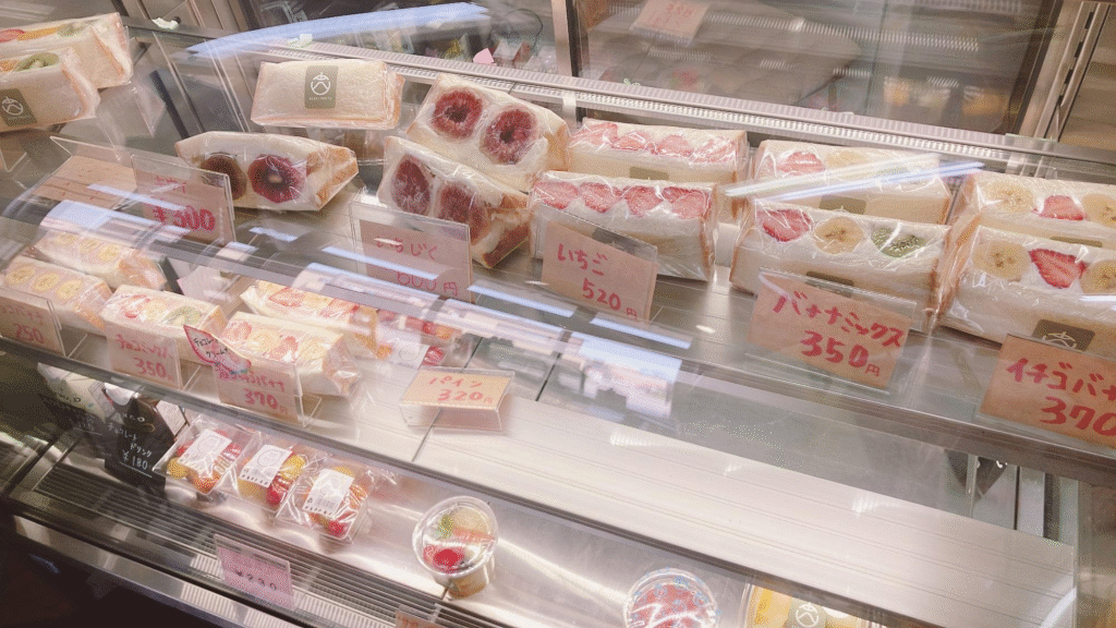 オオスミフルーツのショーケースにはフルーツサンドが並んでいます。