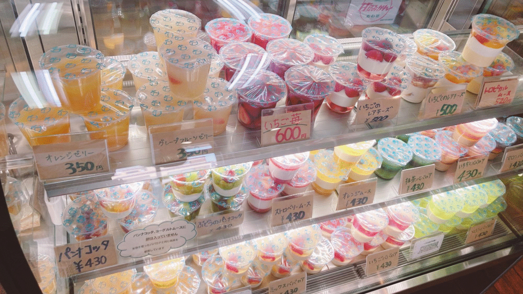 ゼリーやムース、パンナコッタなどには色鮮やかなフルーツが入っていて、キラキラと宝石のような見た目に見ているだけでもワクワクします。