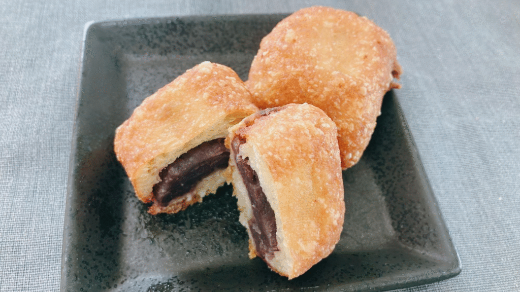中には粒あんがたっぷりと入っていて、外はサクっと、中はふわもちです。