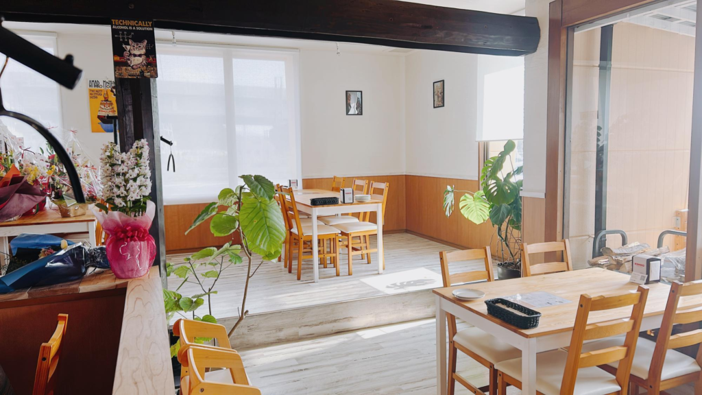 明るい店内にゆったりと席が配置されています。