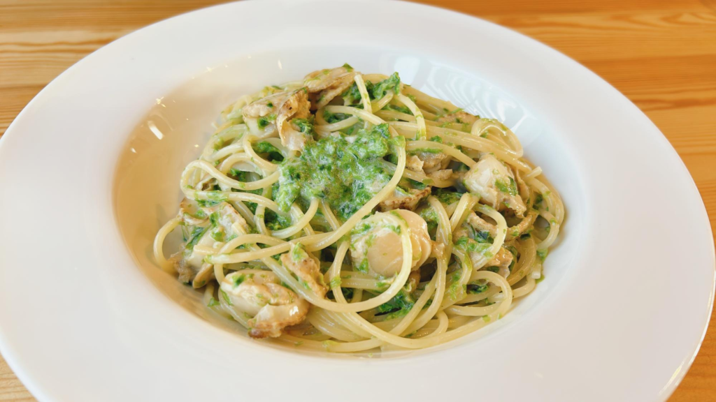 ほたてとあおさのクリームソースです。