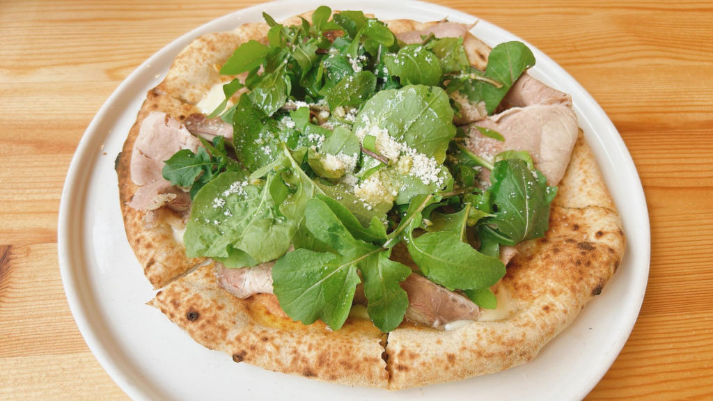 自家製ハムとルーコラのピザです。