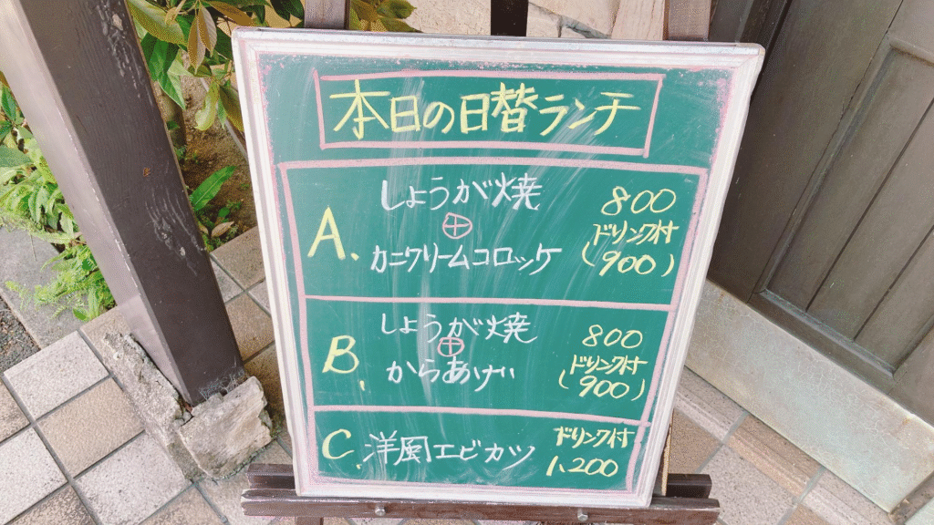 特にお得な日替わりランチのメニューは店の前の黒板に書かれています。